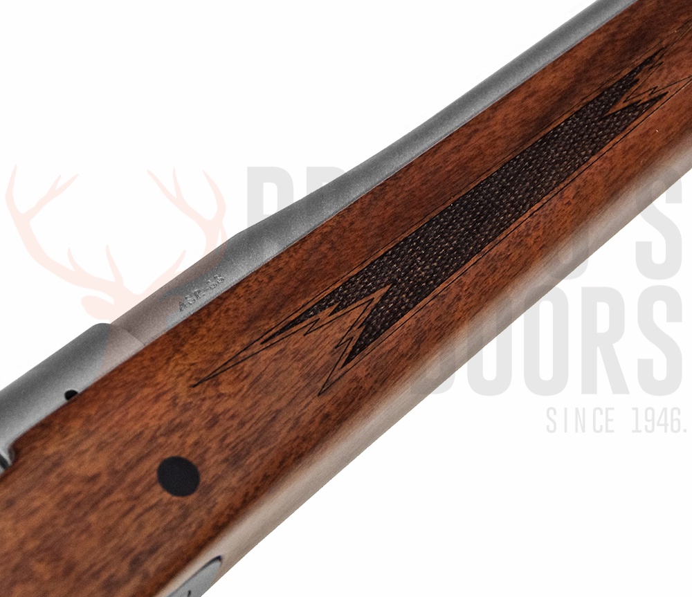 The ASR-SS is a stainless steel barreled action in a field grade American Black Walnut stock.