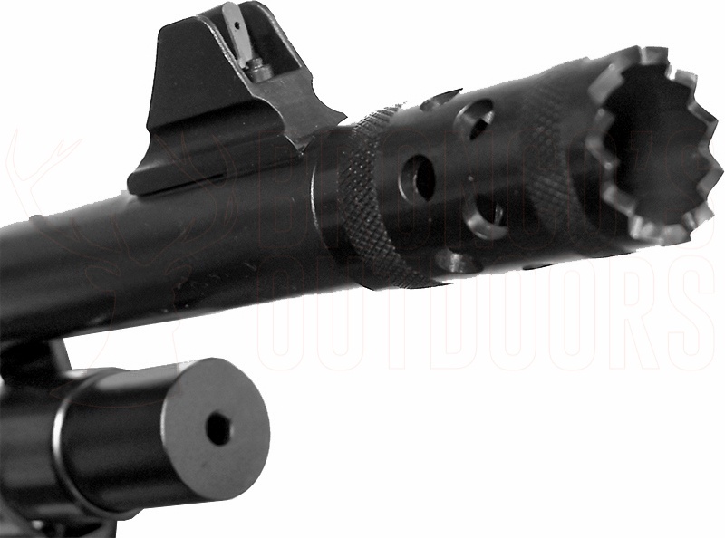 This is the 19.5" short barrel version fitted with a plain barrel & Ghost Ring sights and Muzzle Brake.