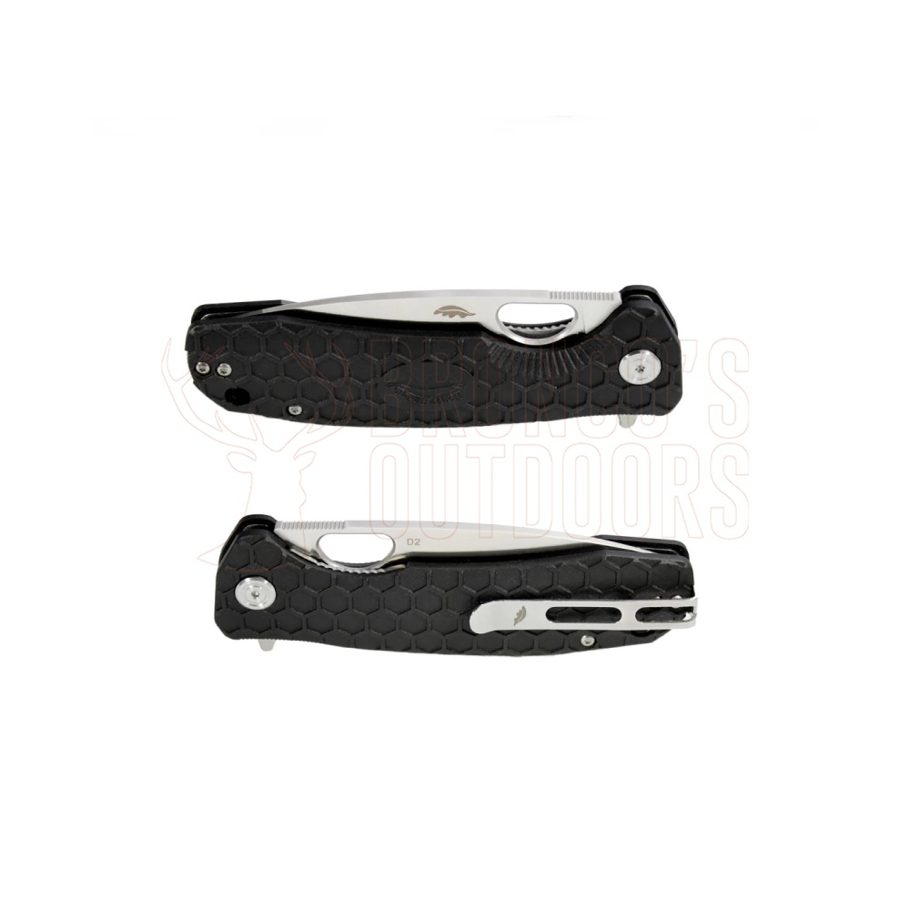 The Honey Badger D2 Steel Flipper features a blade made from D2 steel - a high carbon, high chromium tool steel renowned for it’s high wear and abrasion-resistant properties.