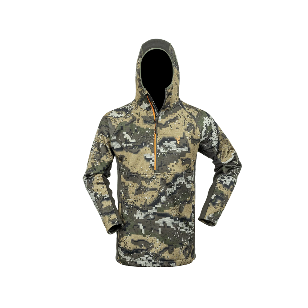 If you’re venturing on mid-winter alpine excursions or warm spring/summer missions the all-purpose, all-season, Zenith Hood is an essential hunting mid-layer top. An integrated slimline hood has a skull cap design, providing complete insulation without any uncomfortable moisture or bulk when paired with a barrier layer. In particularly cold conditions, you can lose up to 50% of your body heat through your head. Being able to retain body heat and transfer moisture is key to staying safe in the mountains.
