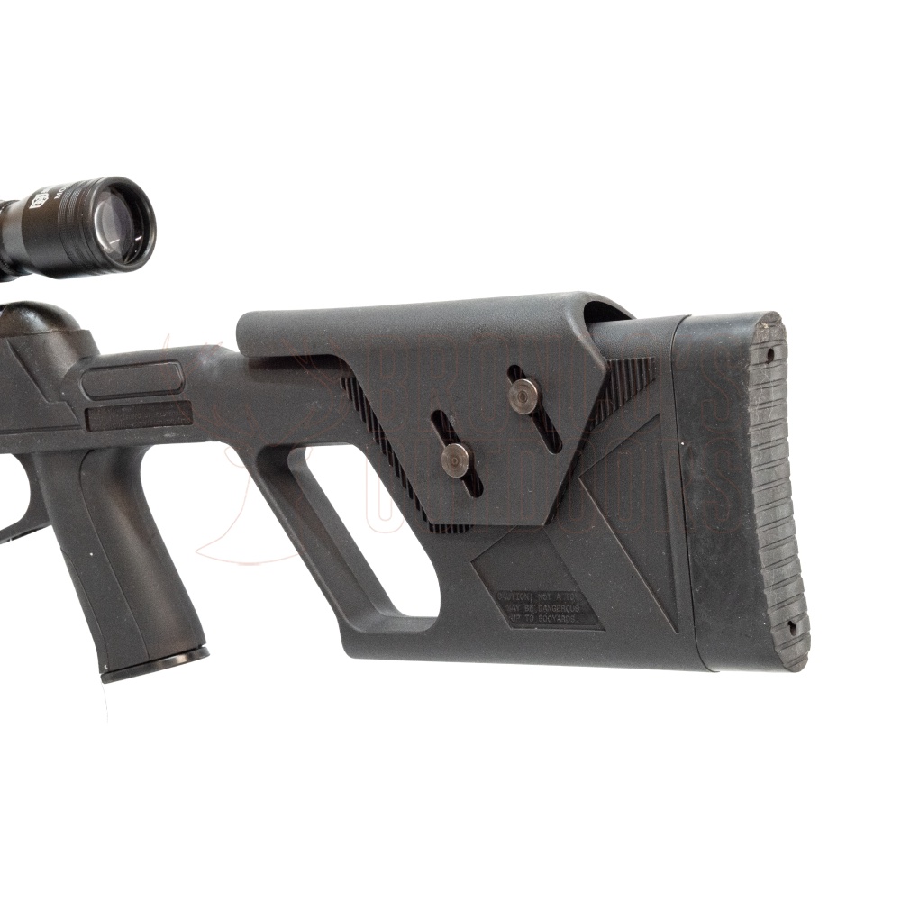 The adjustable cheek-piece helps aligning your sight with the target. Fiber-optic open sights, 11mm dovetail grooves for scope and two picatinny rails.