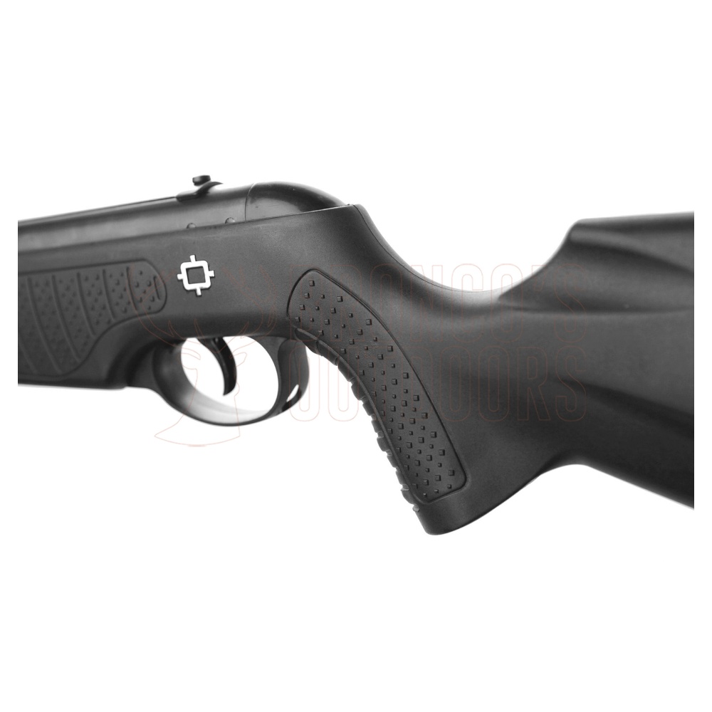 Powered by our GRS the Spider features a sinthetic ambidextrous stock with checkering on pistolet and forearm. The ergonomically shaped muzzle-break features finger grooves for easier cocking action.