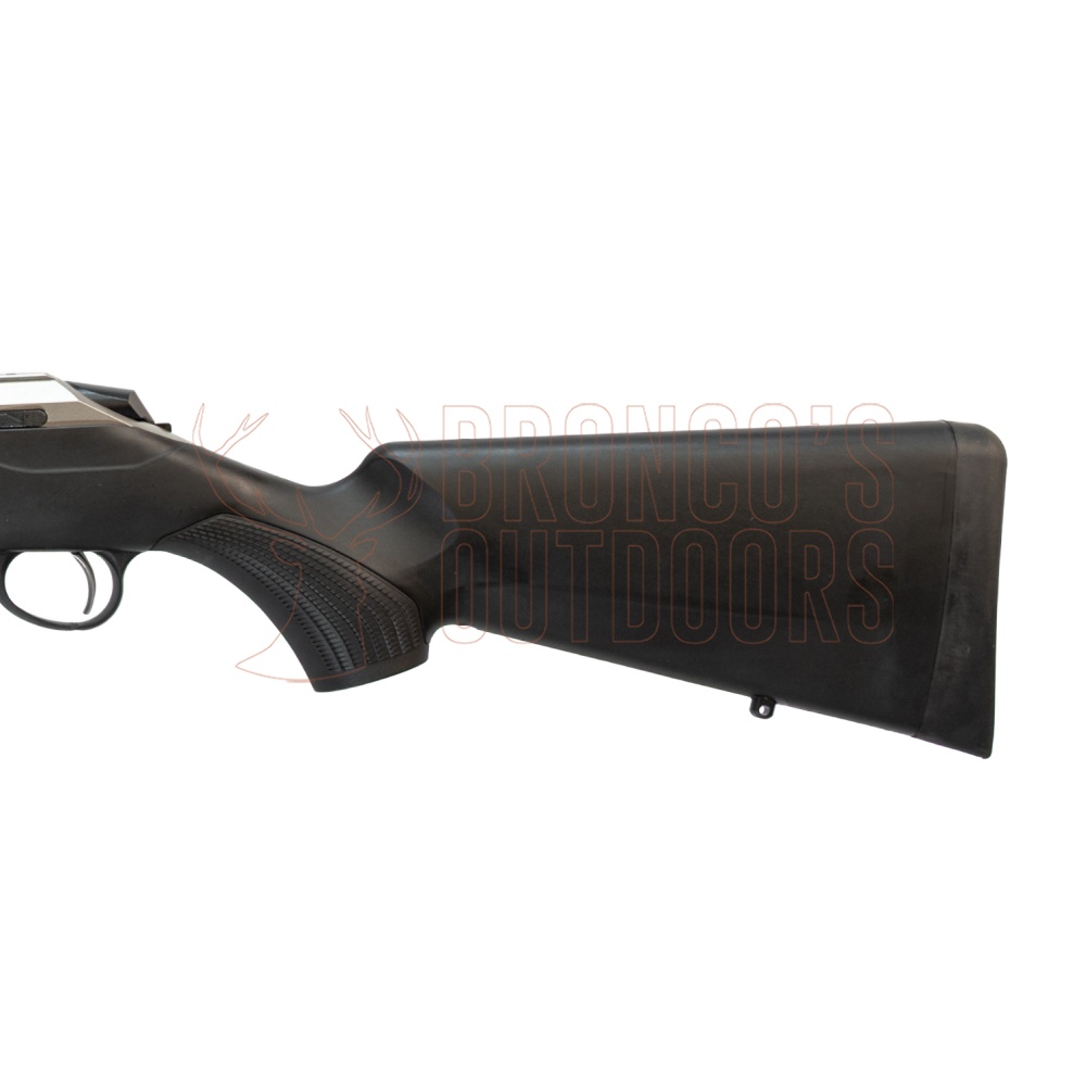 T3x has a new modular synthetic stock that has interchangeable pistol grips, making it possible to modify the angle of the grip. This allows for multiple shooting positions. Additional grips are sold separately. The T3x synthetic stock also has an additional attachment point which allows you to change the width of the stock’s fore-end.